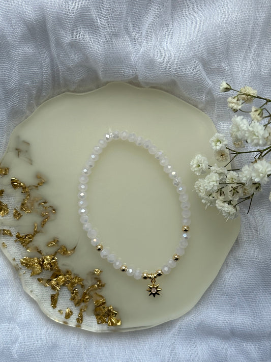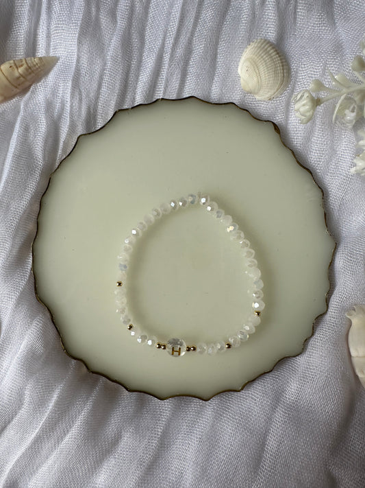 Perlenarmband personalisiert mit Weißen Kristallperlen - 10488