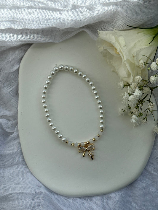 Perlenarmband mit Weißen Perlen und Schleifen Anhänger - 10562