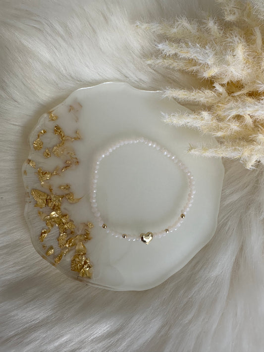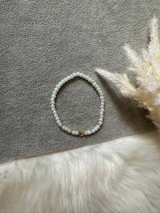 Perlenarmband mit weißen Perlen und goldenen Herz Anhänger - 10490