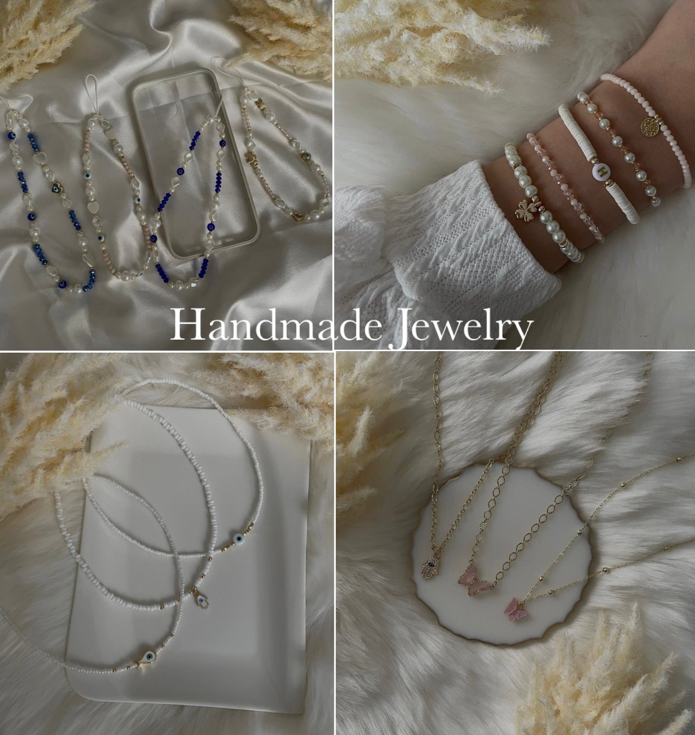 Perlenkette mit Weißen Perlen und Blumen und Buchstaben Anhänger - 10221