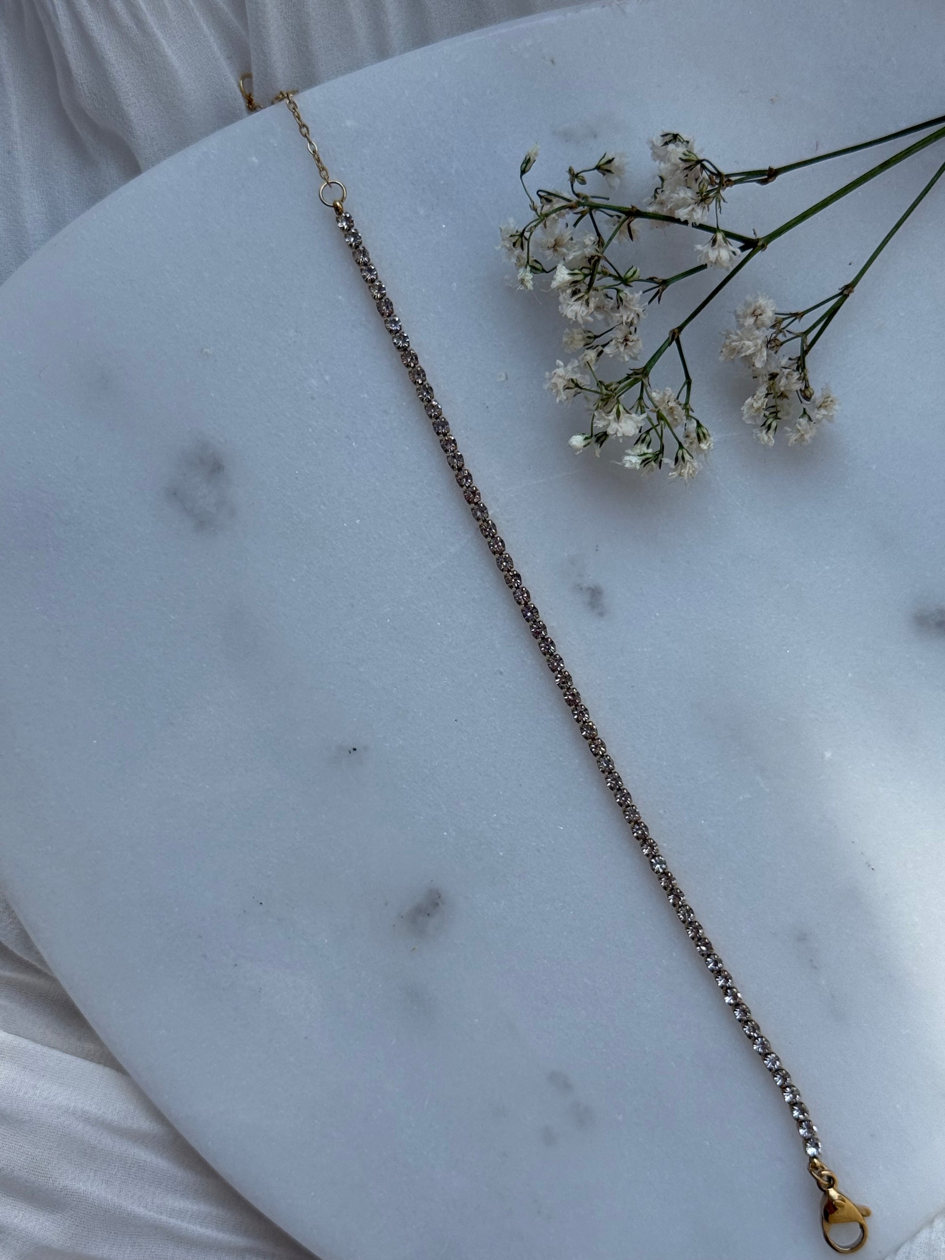 Edelstahl Armband Zirkonia Gold Dünn - 11074