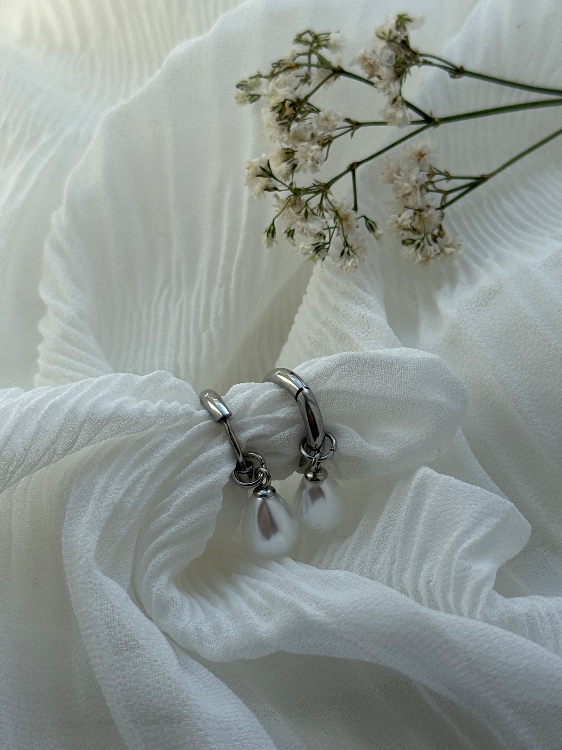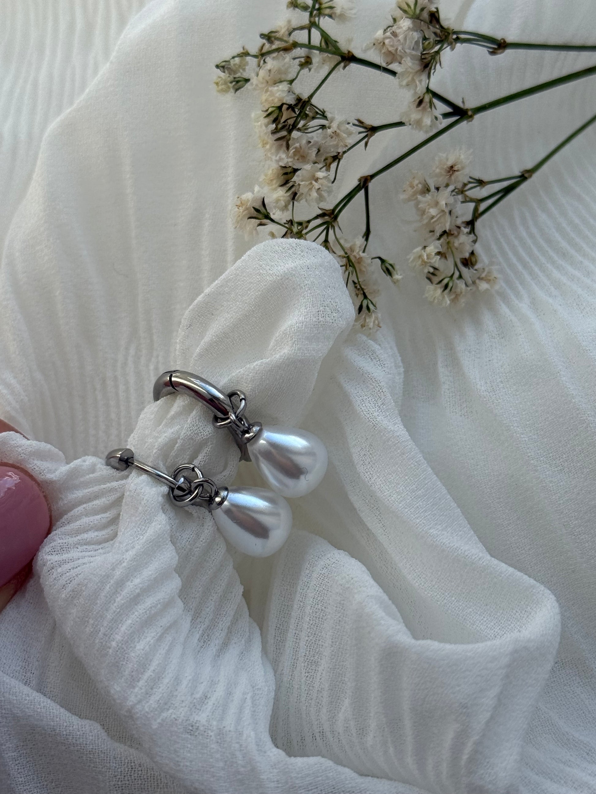 Silberne Hoops Ohrringe Edelstahl mit Perle - 11111