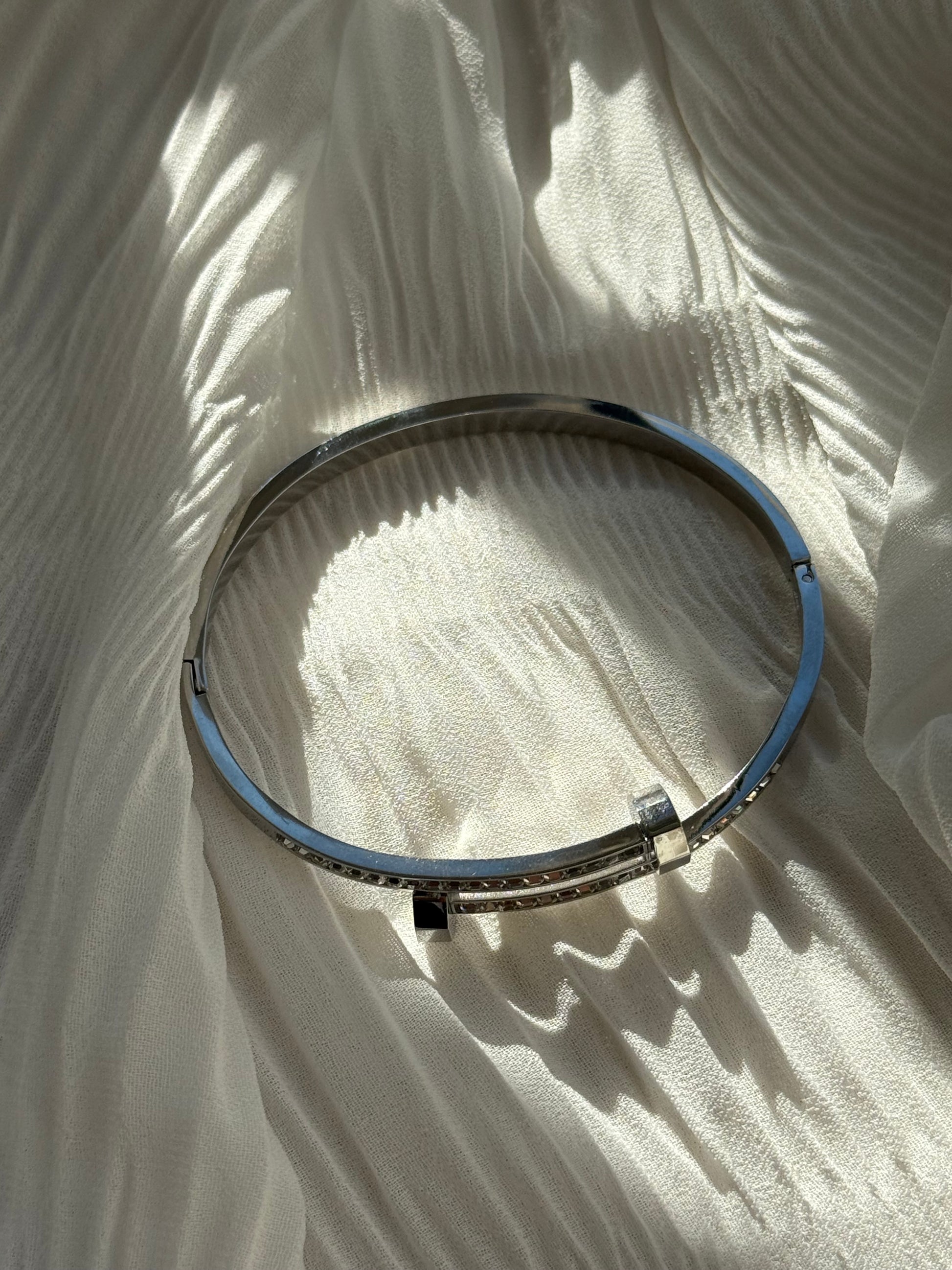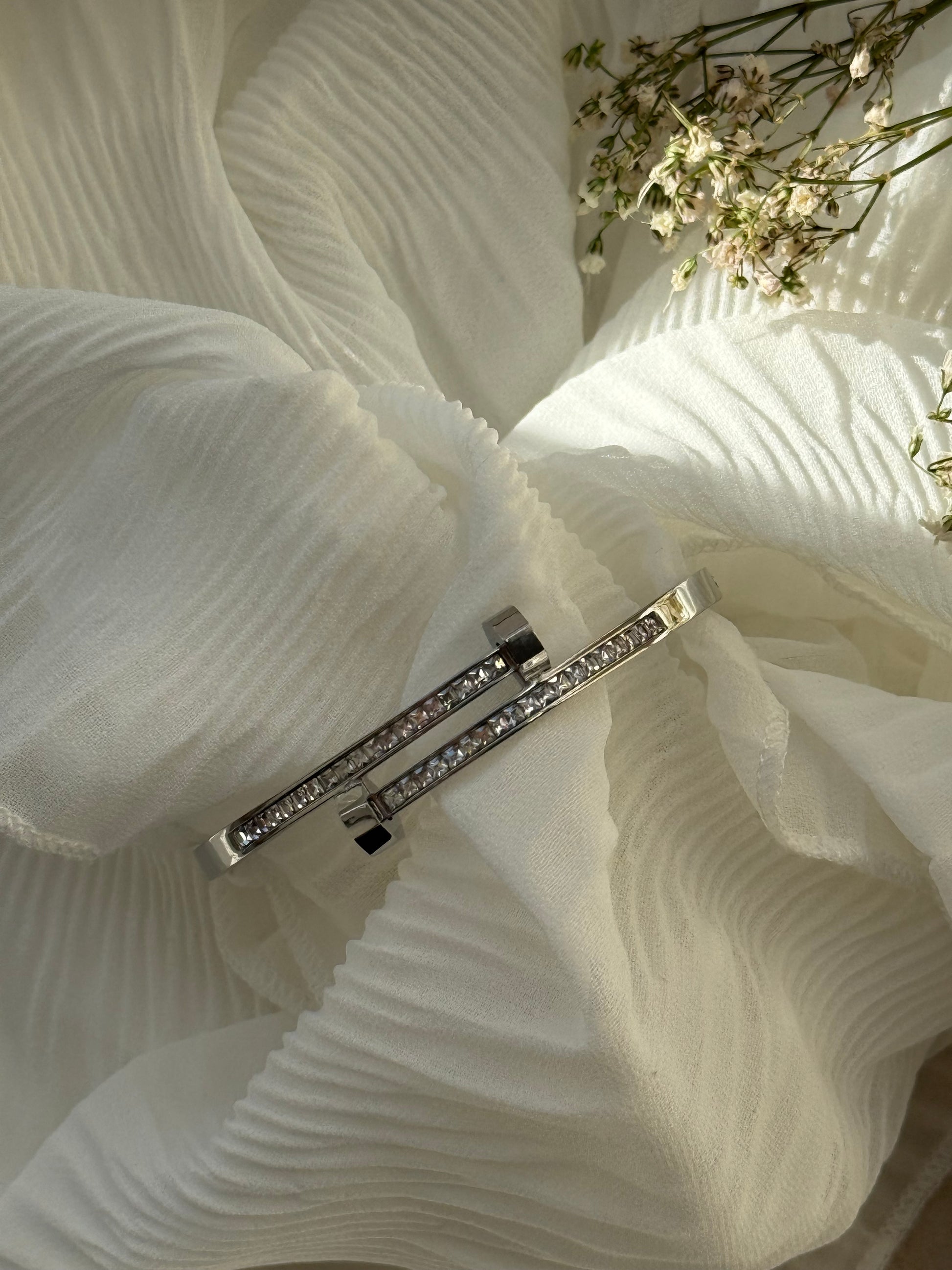 Das Armband besteht aus Edelstahl und stylt jedes Outfit auf.