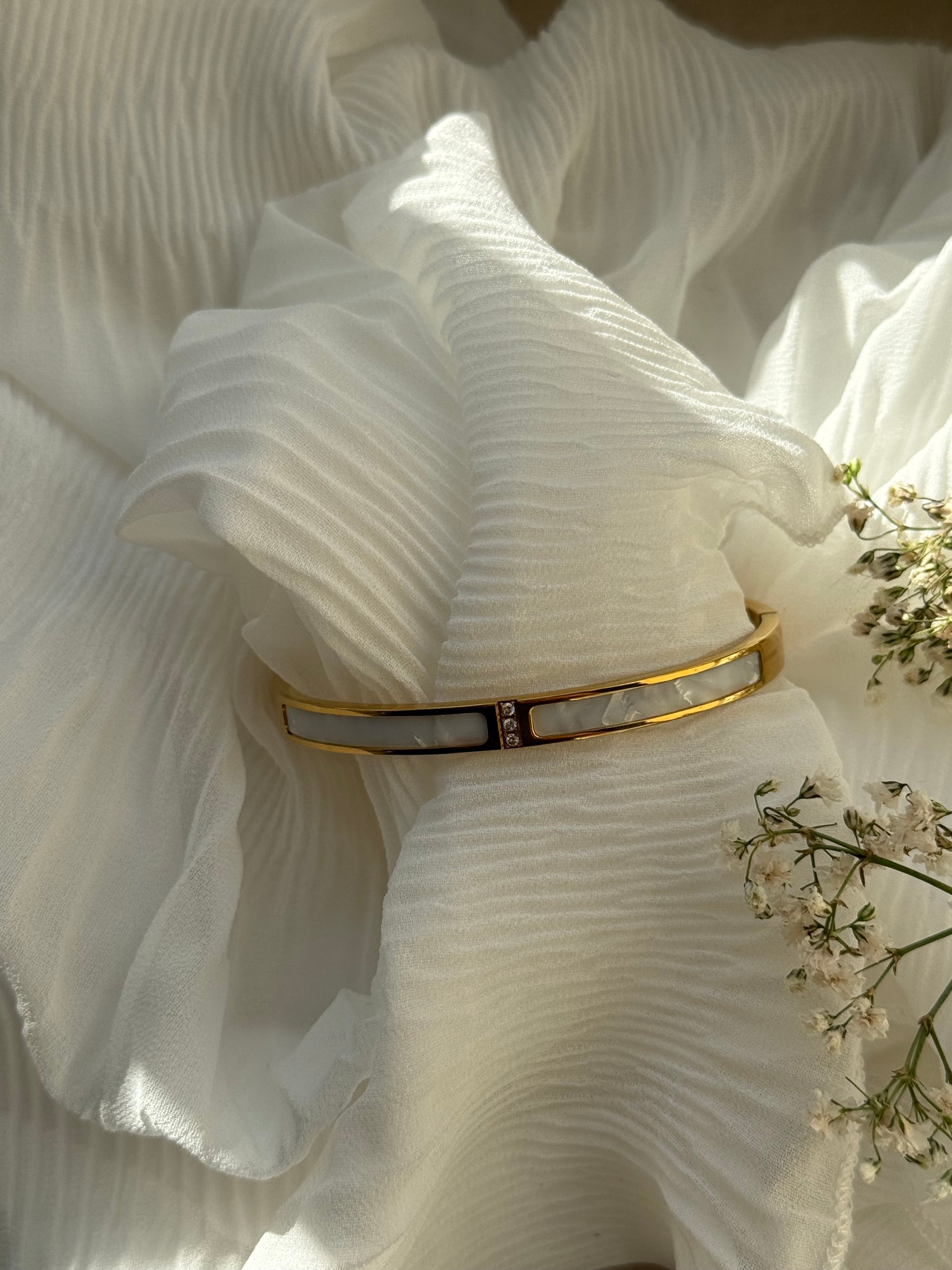 Goldener Armreif Beige mit Steinen - 11090