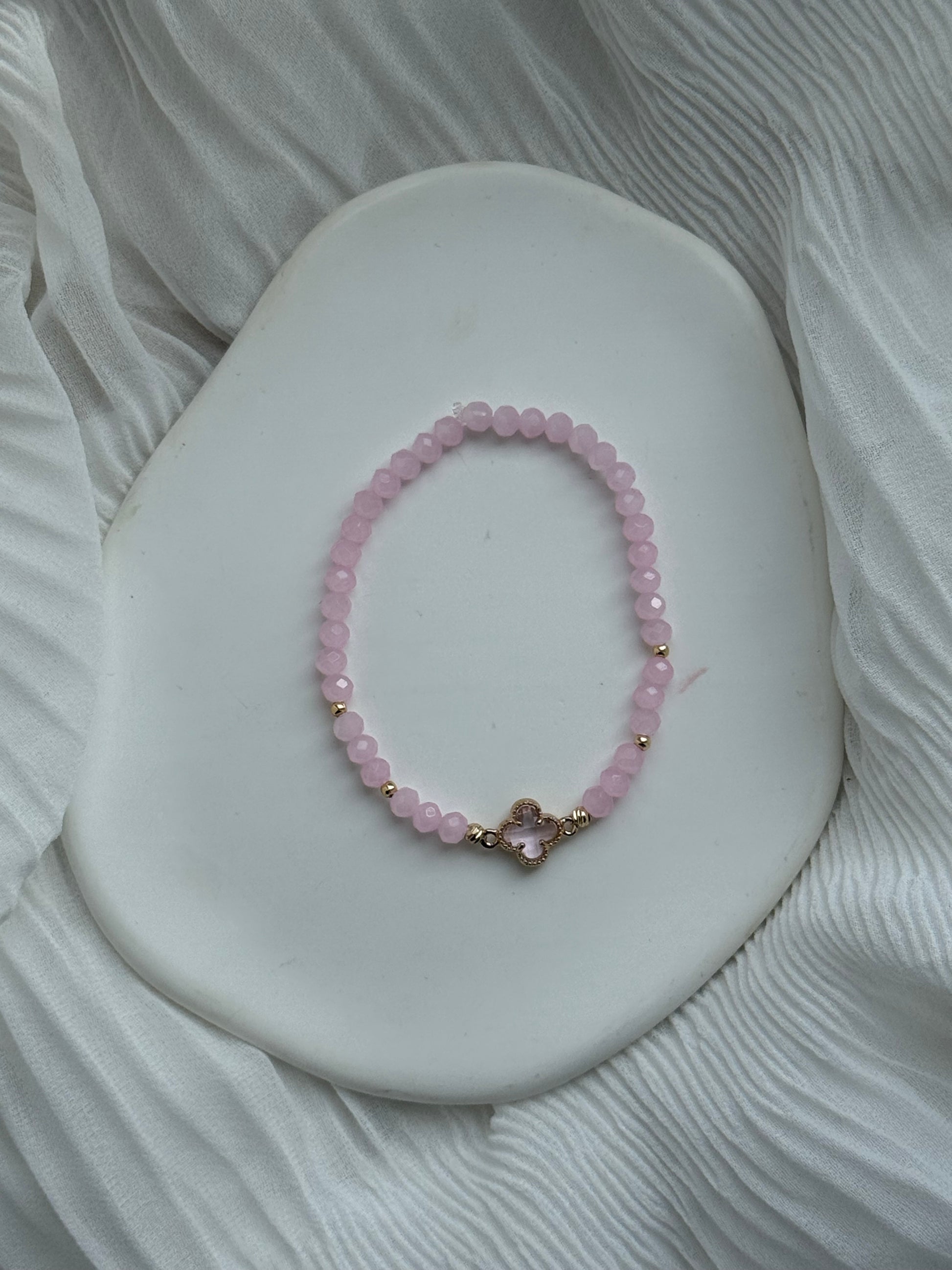 Perlenarmband mit Rosa Kristallperlen, Goldenen Details + Kleeblatt Anhänger - 111182