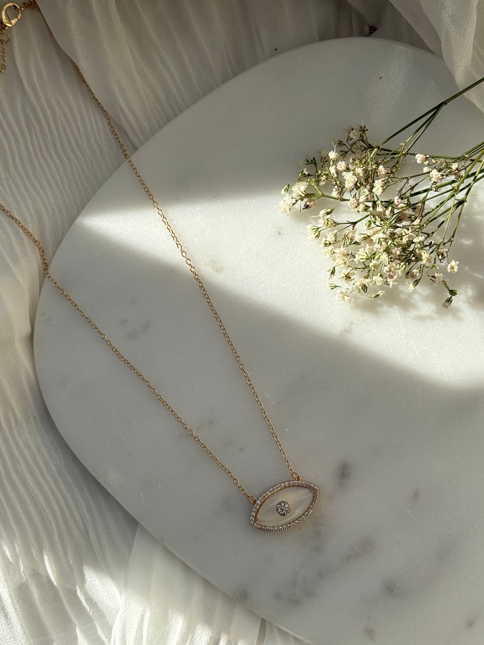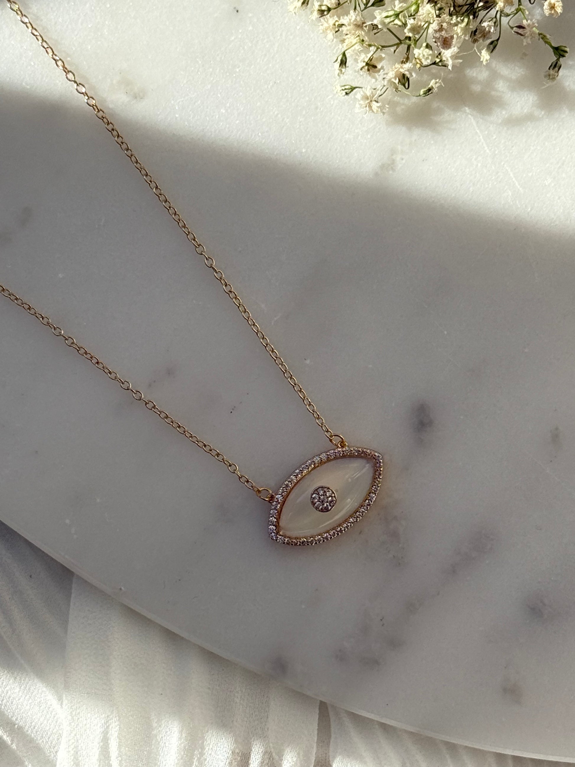 Halskette Edelstahl Evil eye Perlmutt - 11041