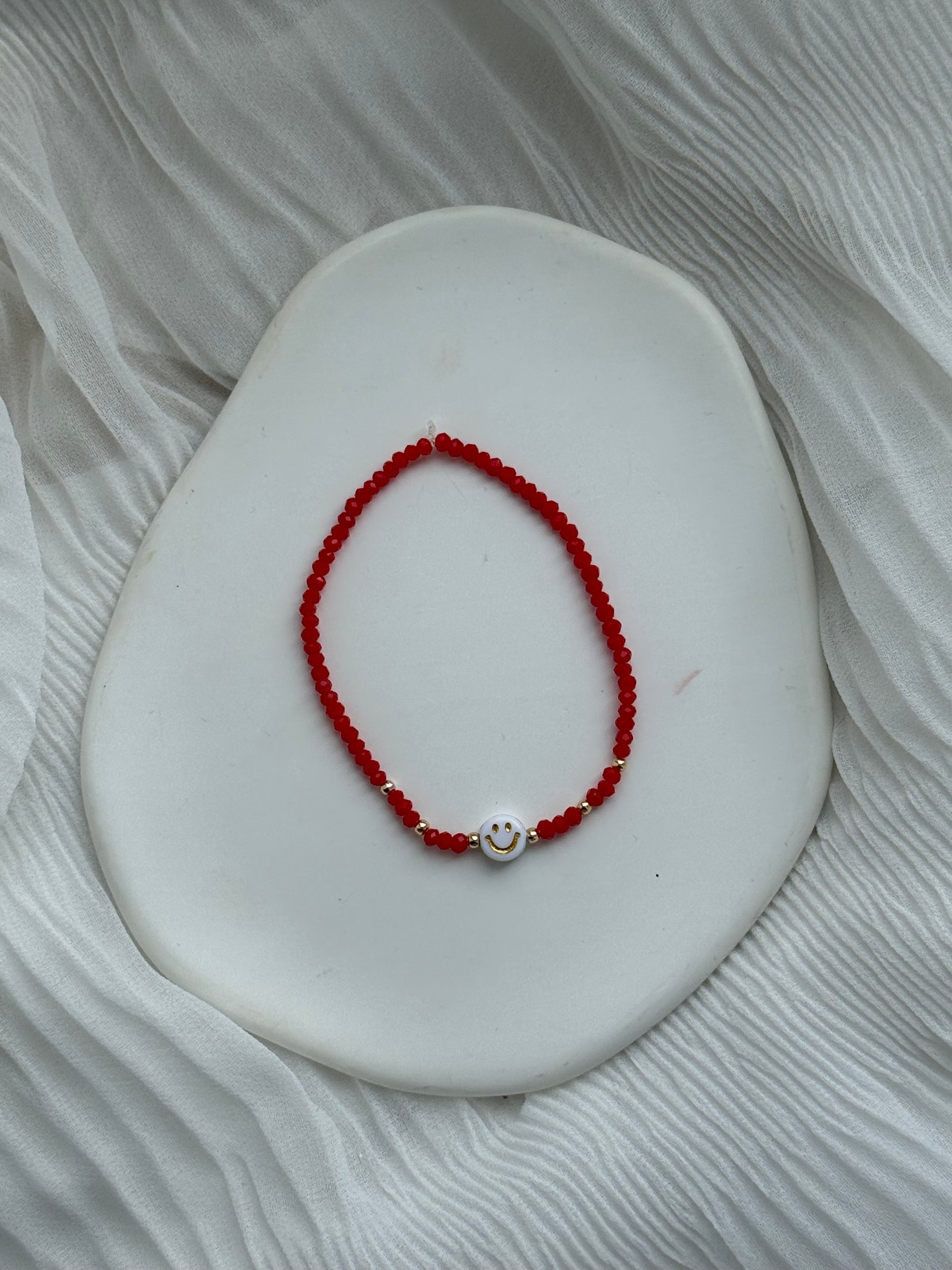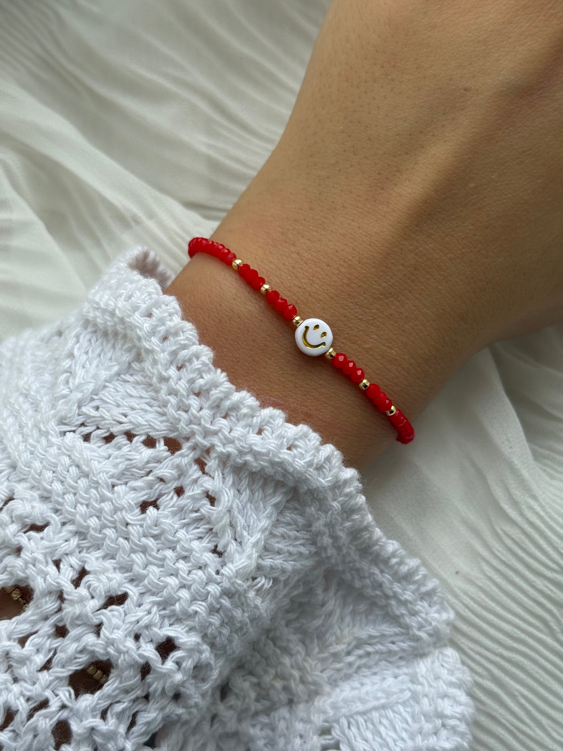 Diese Perlenarmband besteht aus Roten und Goldenen Perlen und Smiley Anhänger und stylt jedes Outfit!
