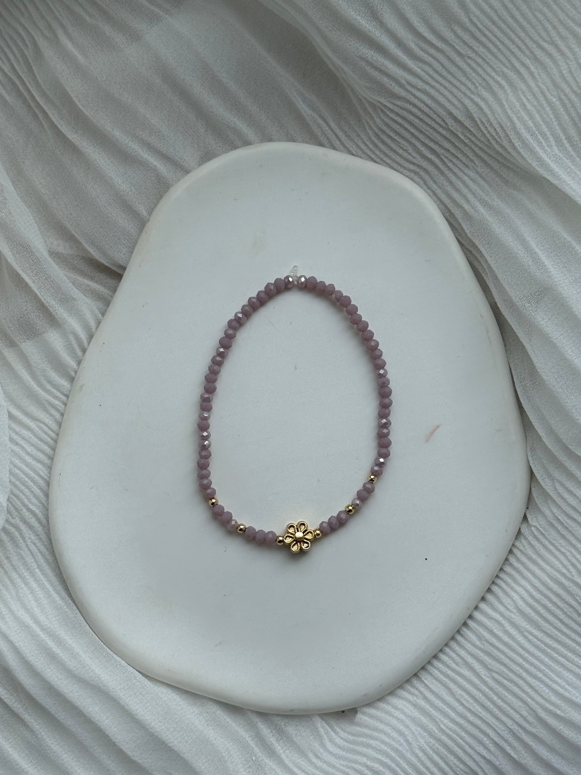 Perlenarmband mit Flieder Kristallperlen, Goldenen Details + Blumen Anhänger - 111190