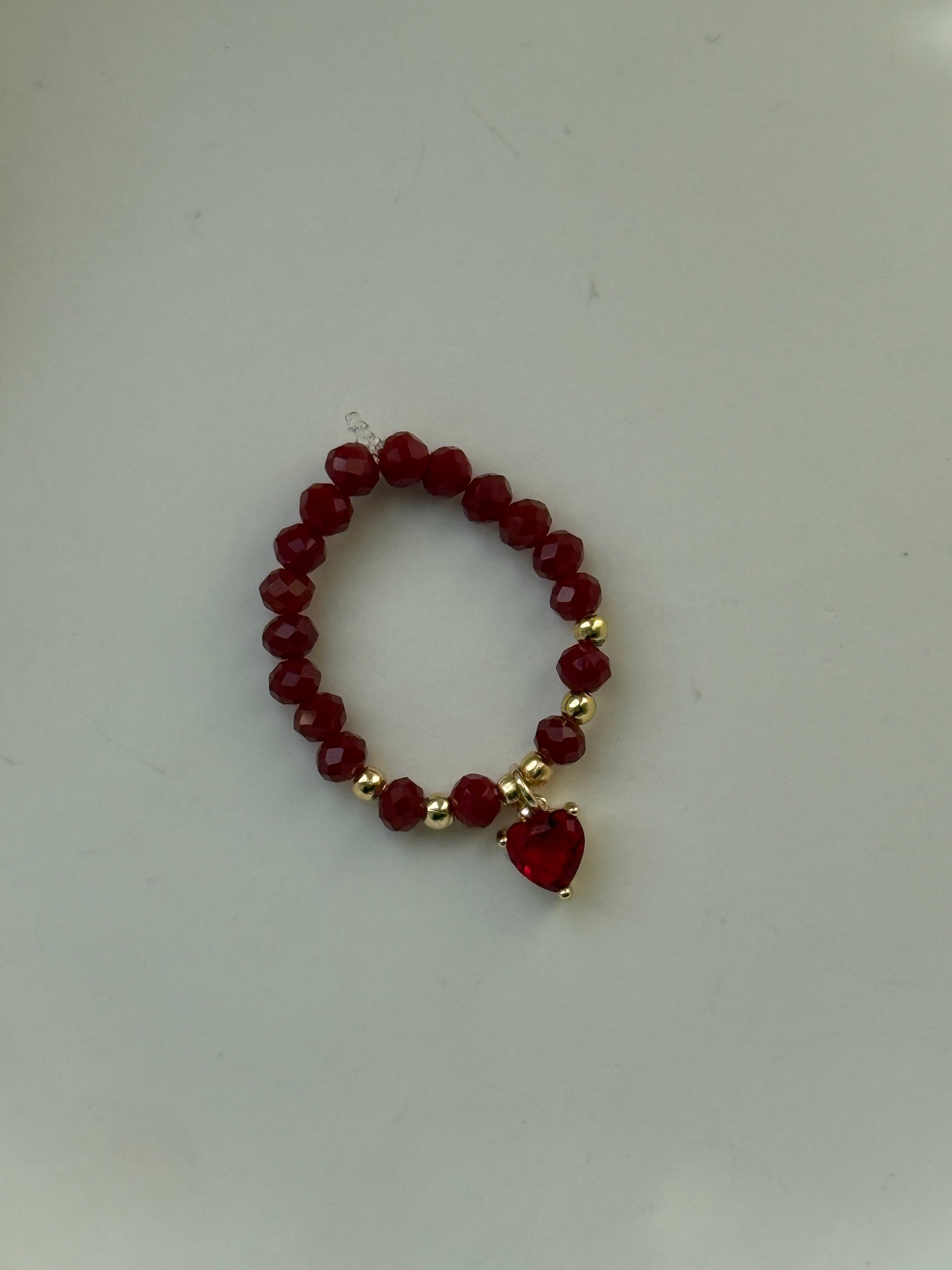 Perlenring mit Roten Kristallperlen, Goldenen Details + Herz Anhänger - 111202
