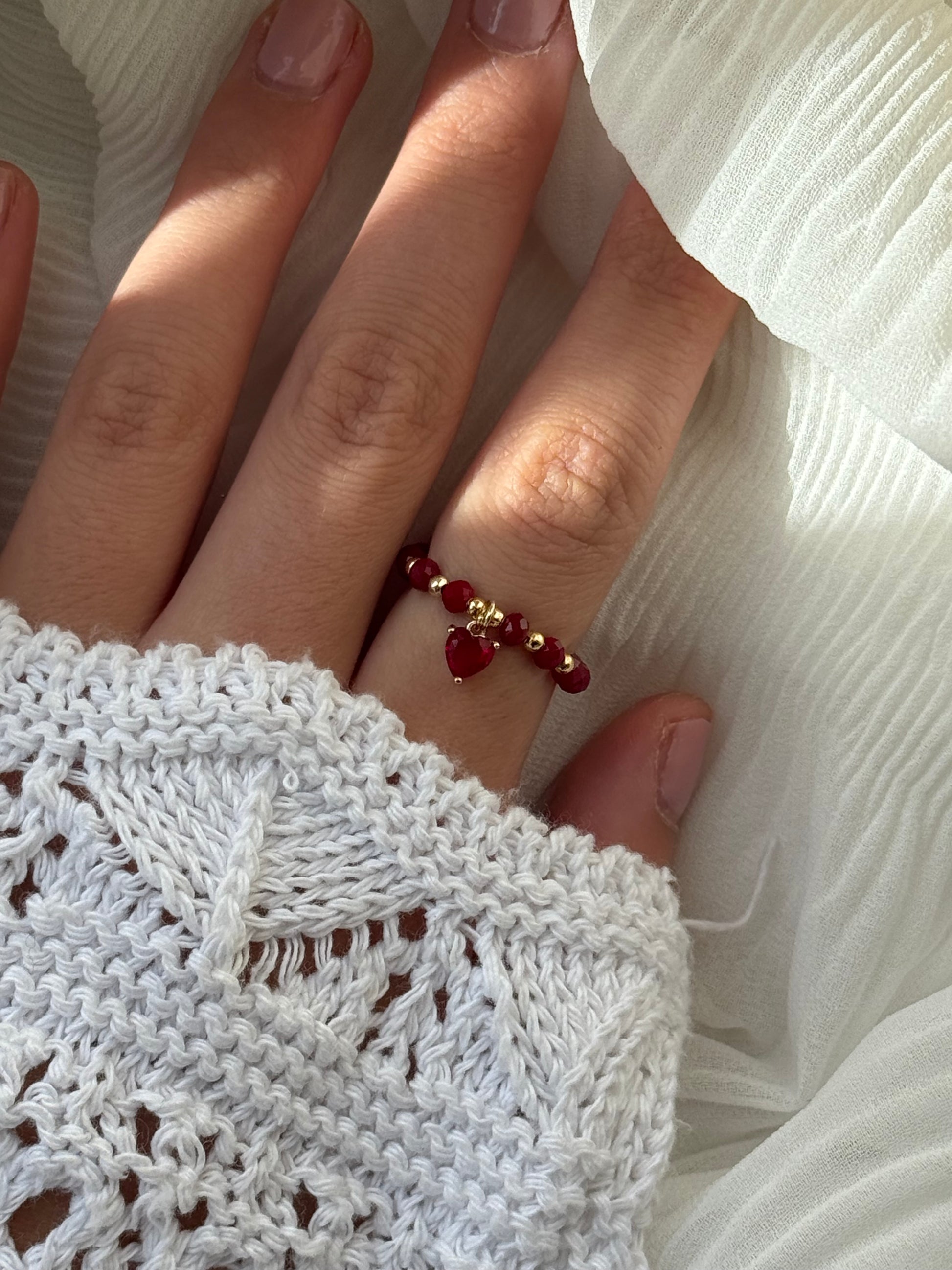 Dieser Perlenring besteht aus Roten Perlen und Goldenen Perlen und Herz Anhänger und stylt jedes Outift auf!