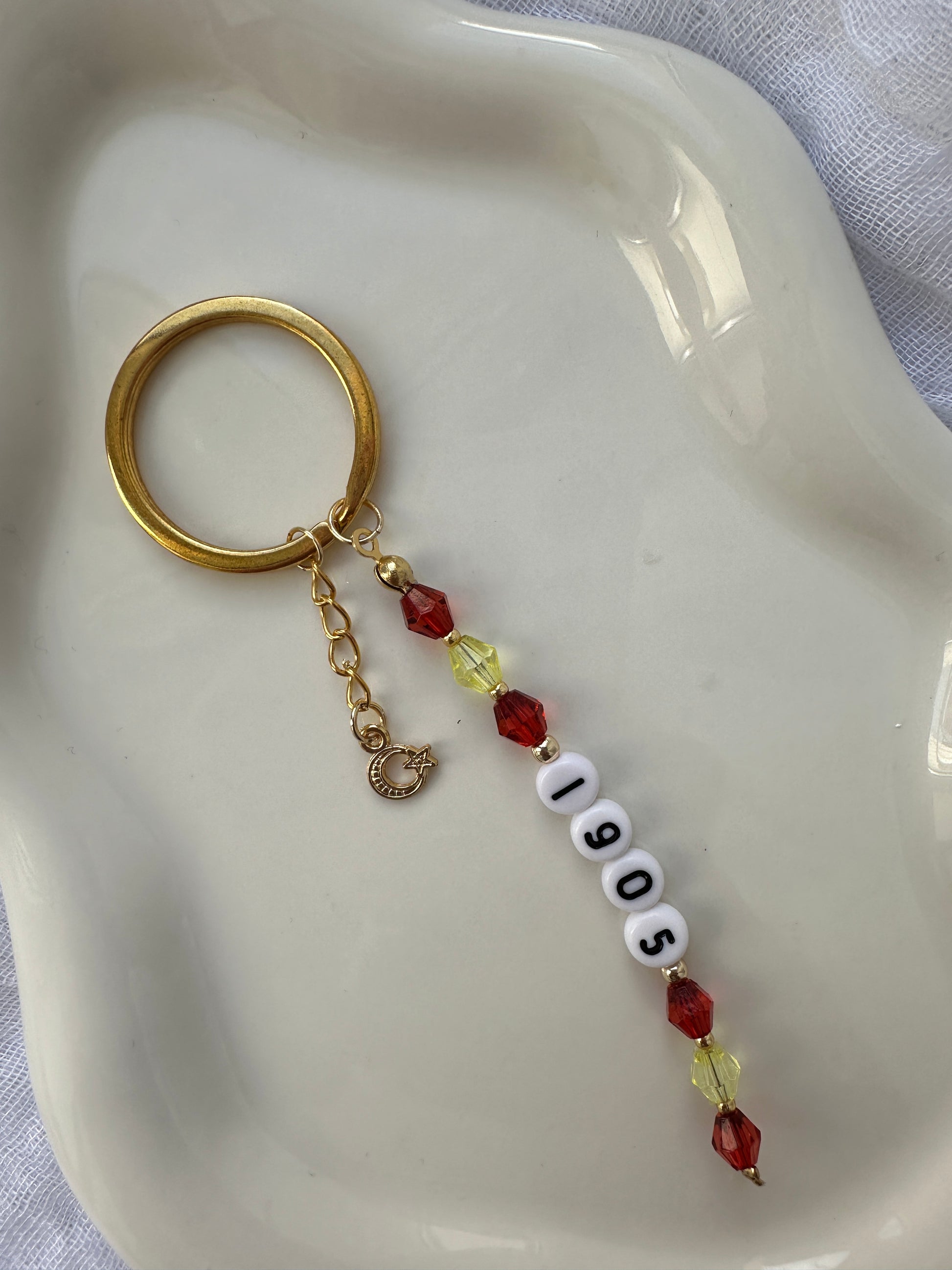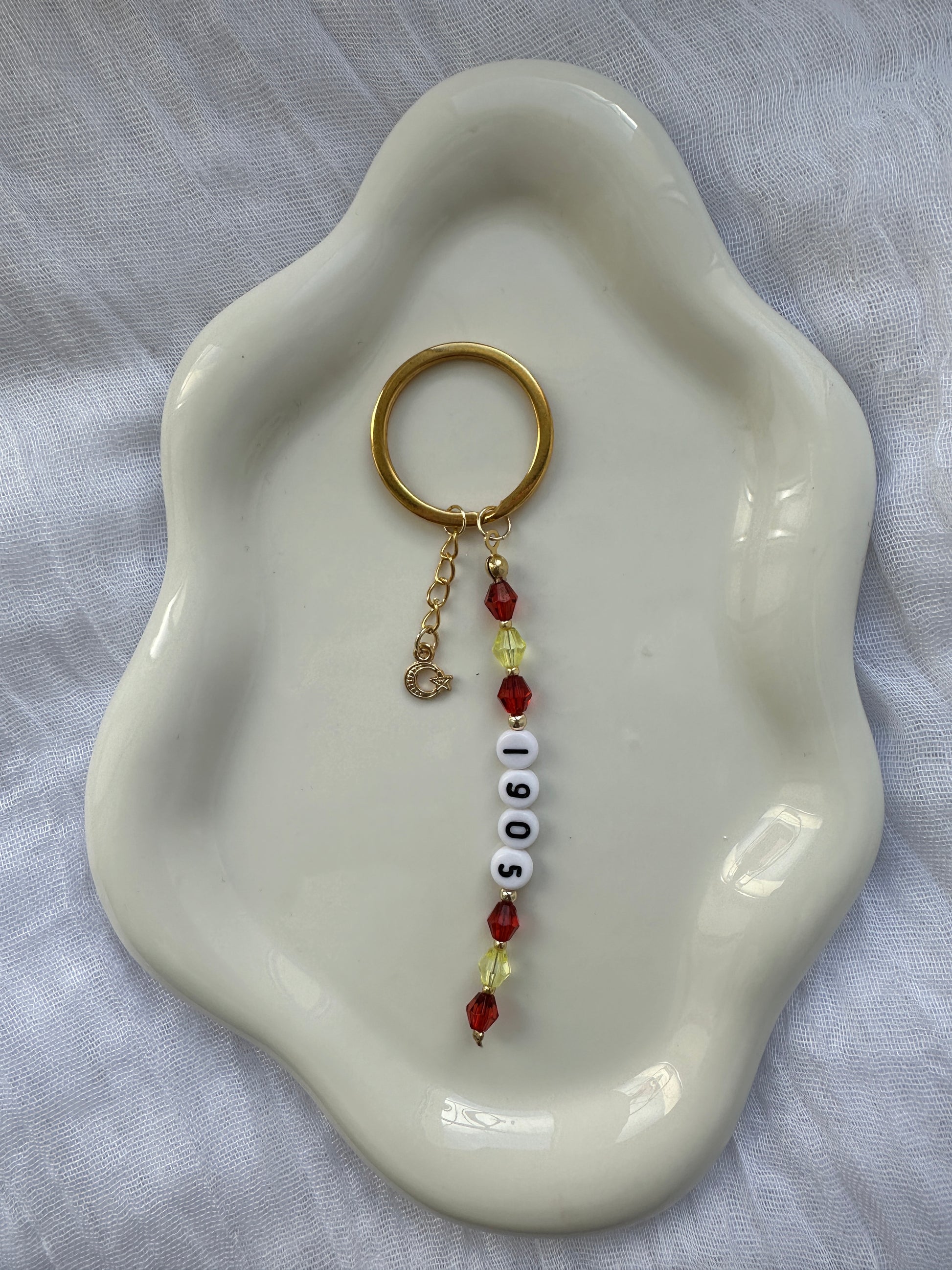 Der Schlüsselanhänger besteht aus Roten Perlen und Gelben Perlen + Anhänger 🫶🏽