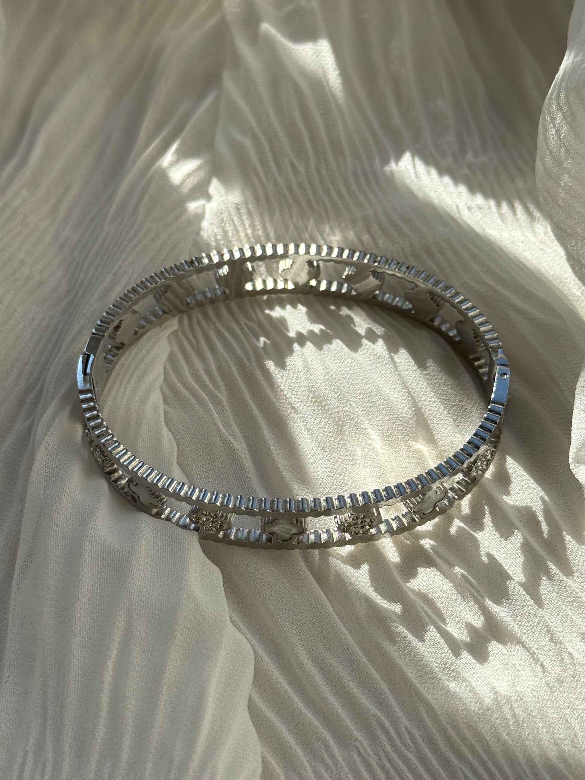 Das Armband besteht aus Edelstahl und stylt jedes Outfit auf.