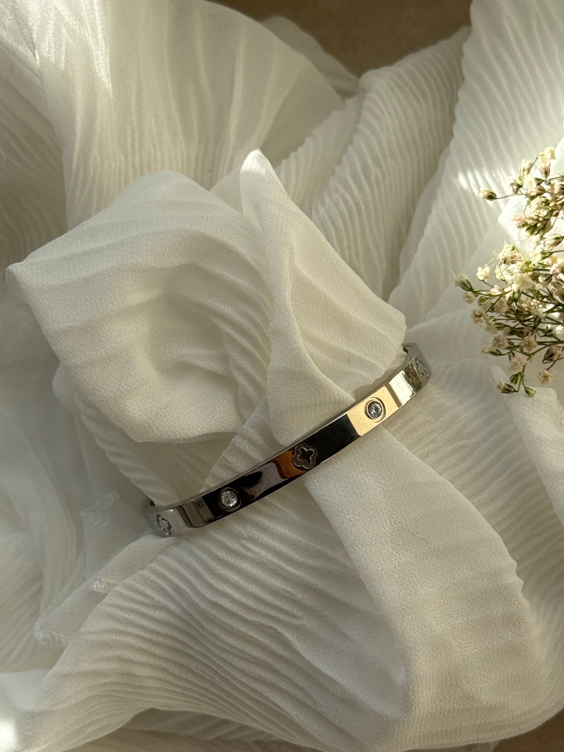 Silberner Armreif mit Steinen und Kleeblatt - 11096