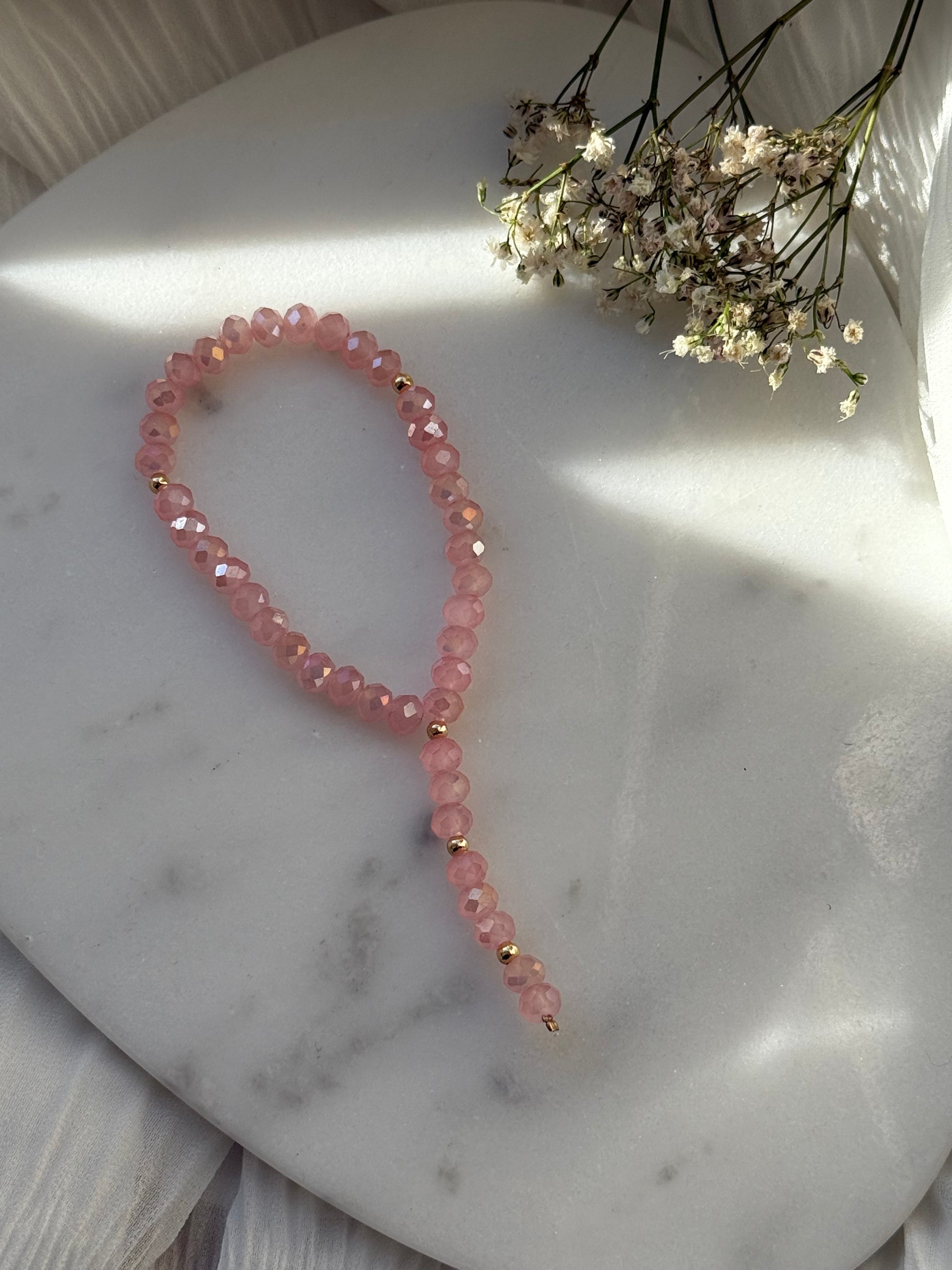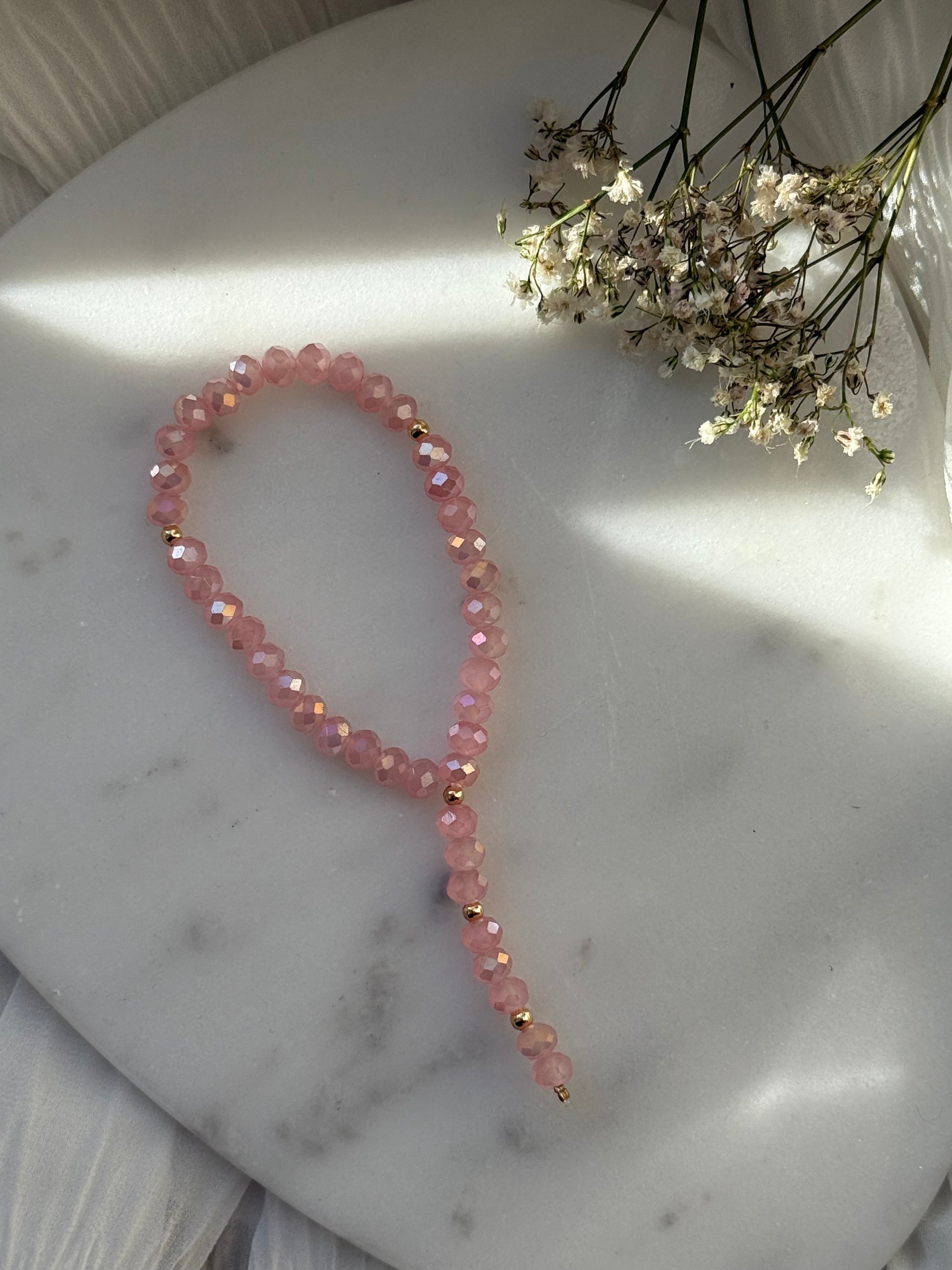 Tesbih mit Rosa Kristallperlen, Goldenen Details - 11015